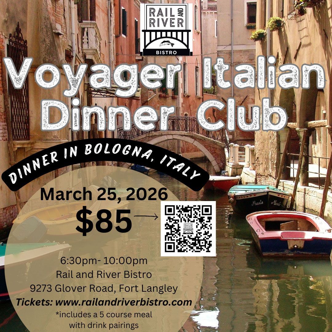Our March Voyager Club Dinner at the Rail and River Bistro welcomes our guests, to travel with us to Bologna, Italy to experience the amazing regional food and drink. Enjoy an evening of 5 food dishes. The five food courses come paired with drinks for each.