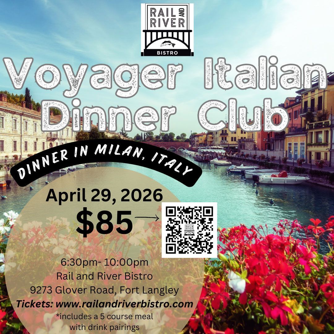 Our April Voyager Club Dinner at the Rail and River Bistro welcomes our guests, to travel with us to Milan, Italy to experience the amazing regional Thai food and drink. Enjoy an evening of 5 food dishes. The five food courses come paired with drinks for each.